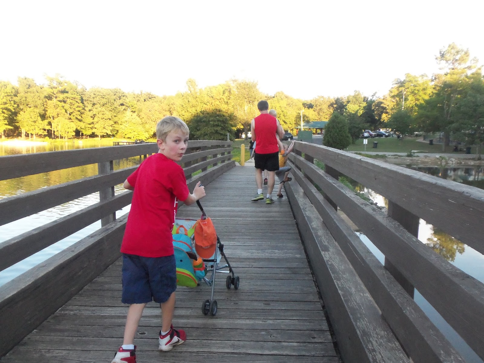 Craighead Forest actually has several playgrounds but we've been sticking to the one with the splash pad. This past Sunday we accompanied Bobby to the park, and while he ran the kids and I played on the playground. It was such a nice day so the park was super crowded. That didn't deter my kids though. Shiloh spent the majority of his time on the swings while Hannah & Sammy played on the "Ninja Warrior" obstacle course. Amos was just all over the place. Sammy occasionally came over to play with Shiloh.